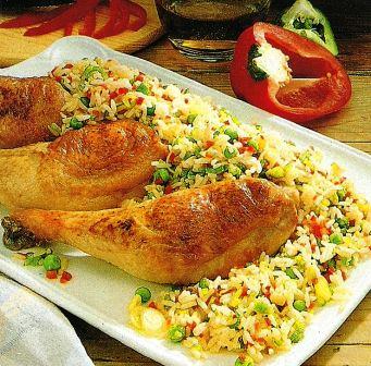 Részeges csirke zöldséges rizzsel