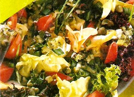 Majoránnás pirított gombasaláta, kukoricaolajjal